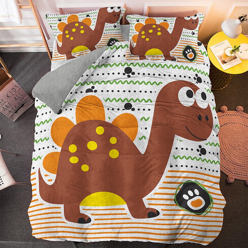 Vous passerez une nuit calme dans cette adorable parure en compagnie du mignon dinosaure.