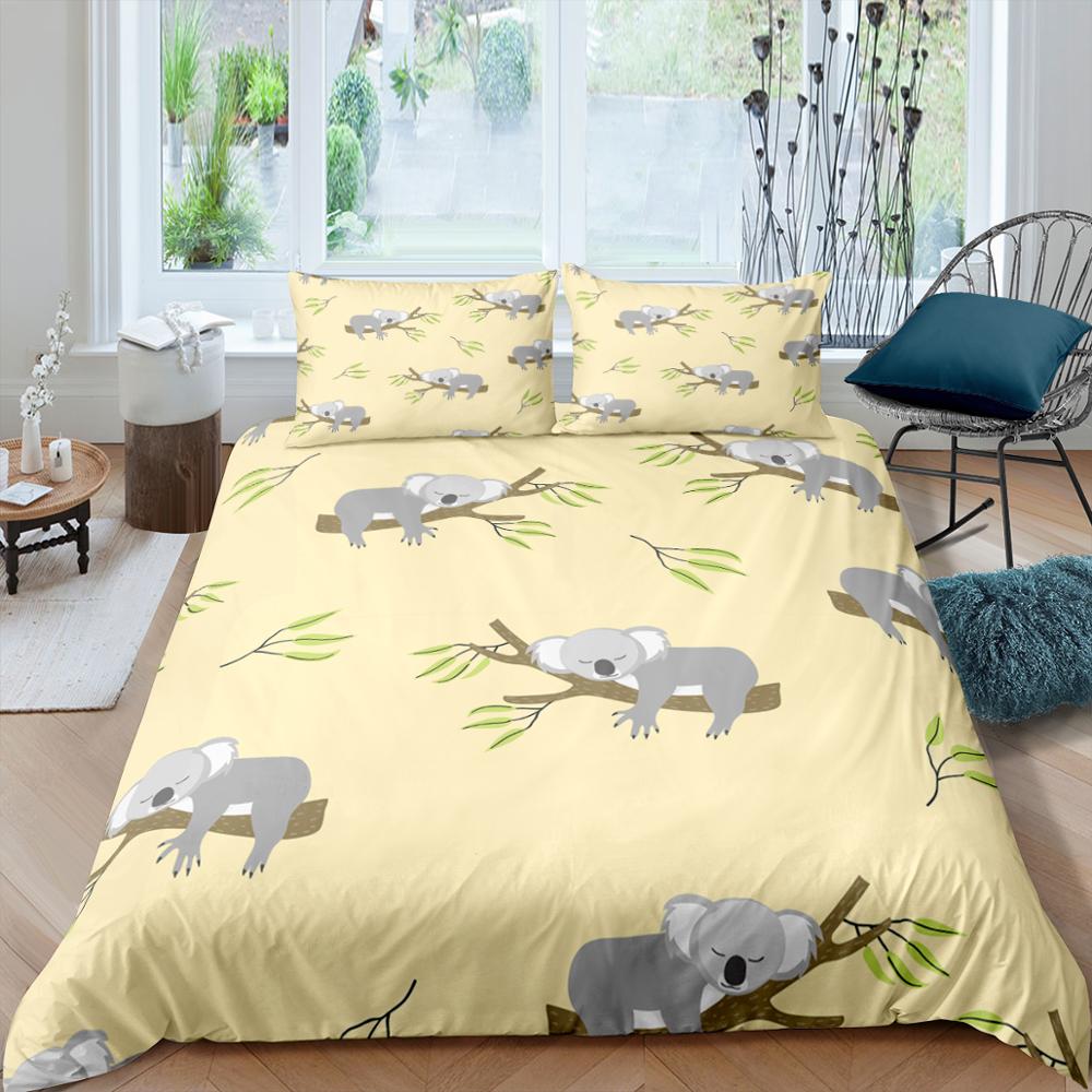 Ce bel imprimé d’un koala qui dort vous invitera au repos et à la détente. Vous adorerez vous prélasser sur votre lit grâce à cette parure de lit koala jaune.