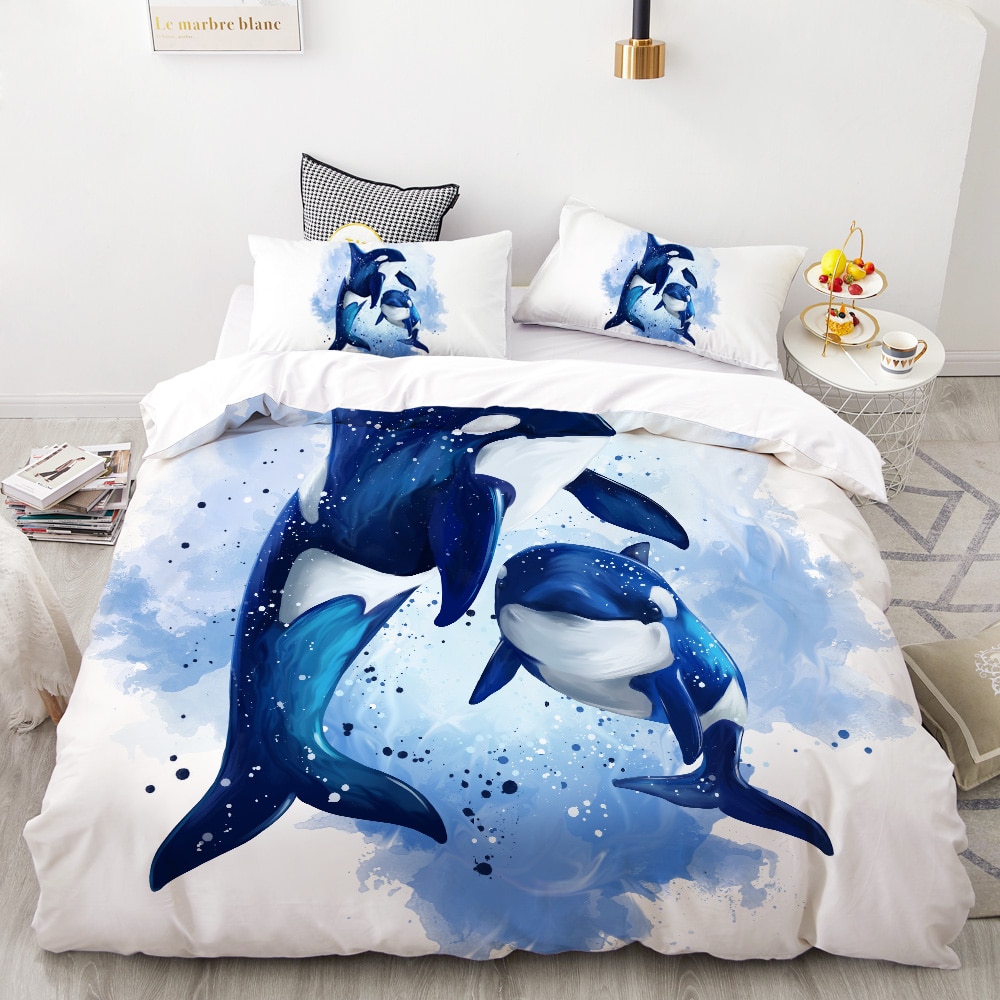 Plongez dans un océan de douceur. Cette agréable parure vous permettra de nager auprès des orques le temps d’un rêve.