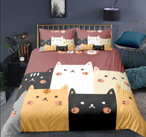 Passez de belles nuits dans cette parure avec petits chats amusants de dessins animés. Bien au chaud, tout doux, vous allez vous y sentir bien pour les nuits fraiches de l’hiver !