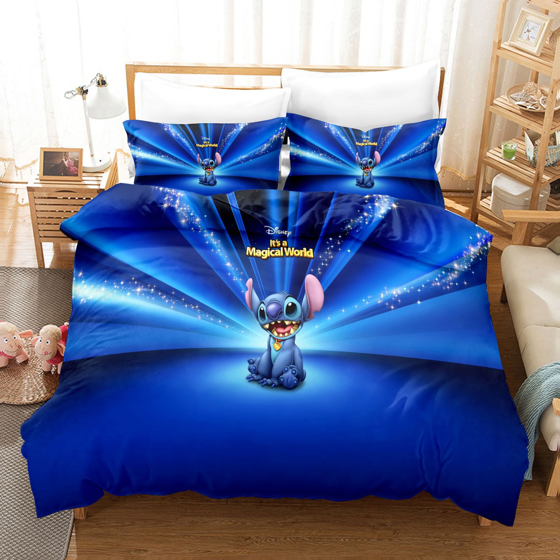 Superbe cette une jolie parure de lit Disney Stitch dans un monde magique. Votre enfant se prendra pour une star, comme Stitch, sous les projecteurs, sur la scène de sa vie. Laissez votre enfant rêver et visionner sa vie en grand.