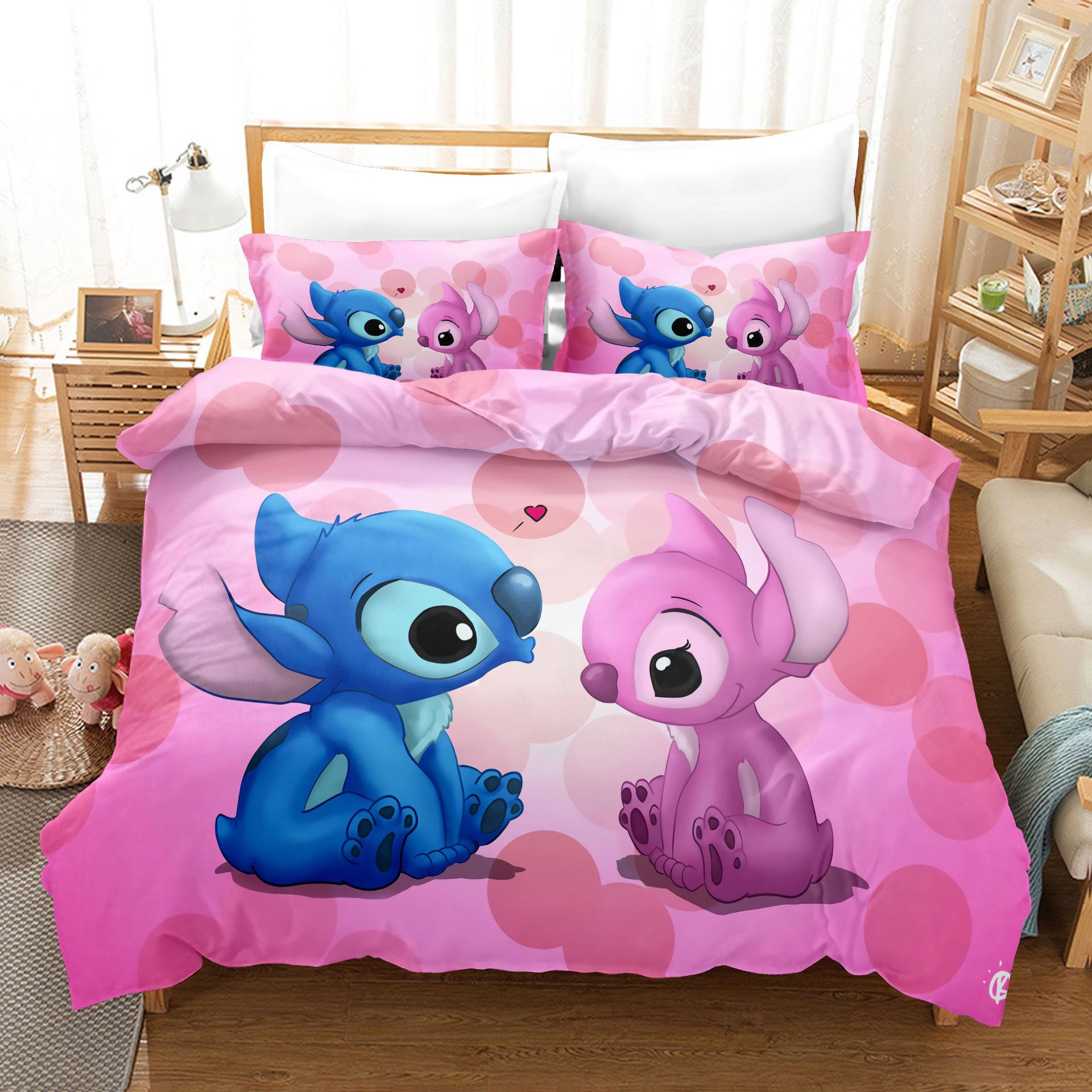 Ne sont ils pas mignons tous les 2? Cette parure de lit rose Stitch et Angel saura faire rêver votre enfant avec ses 2 extra terrestres favoris dessinés sur la couette et les oreillers. Un beau cadeau à offrir.