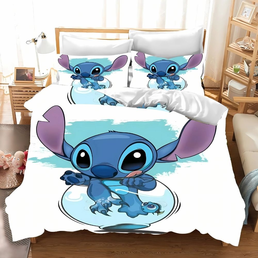 Cette parure de lit met en scène Stitch dans des designs créatifs et colorés qui illuminent la chambre. Avec des illustrations dynamiques et originales, chaque détail a été pensé pour ravir petits et grands.