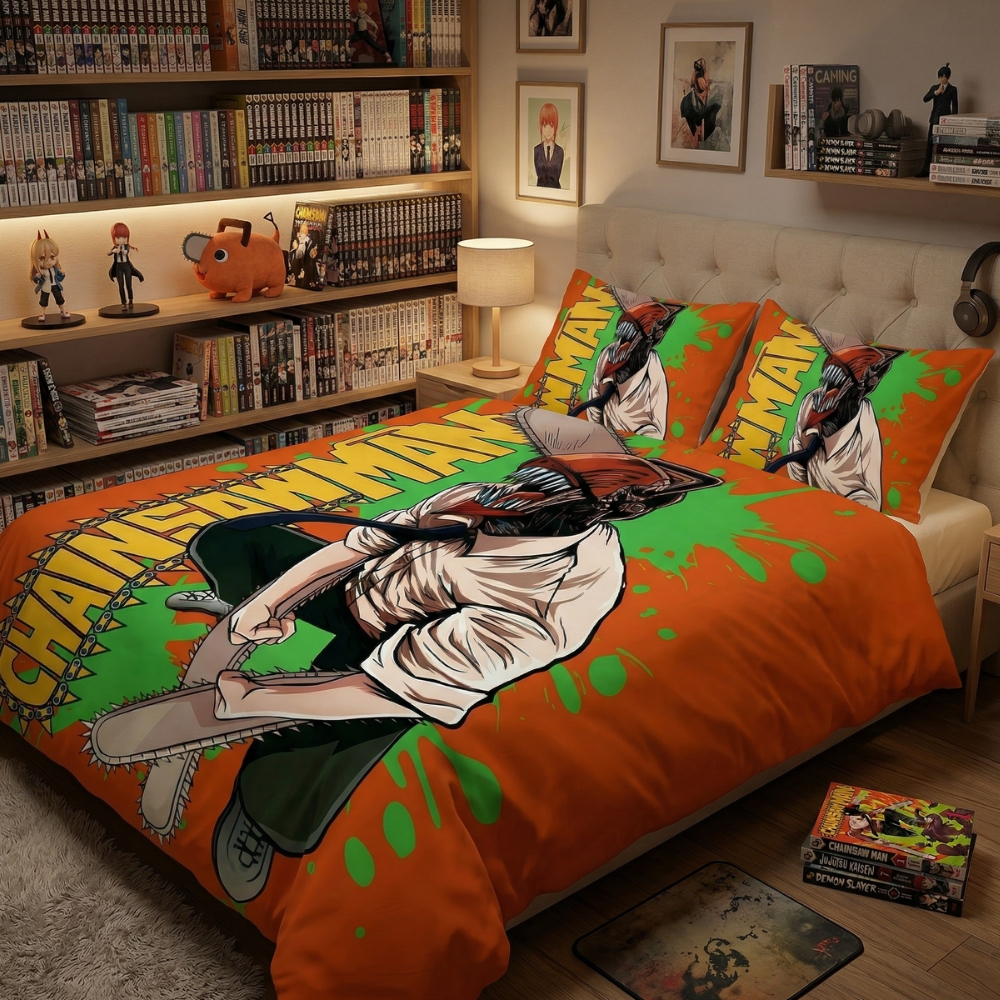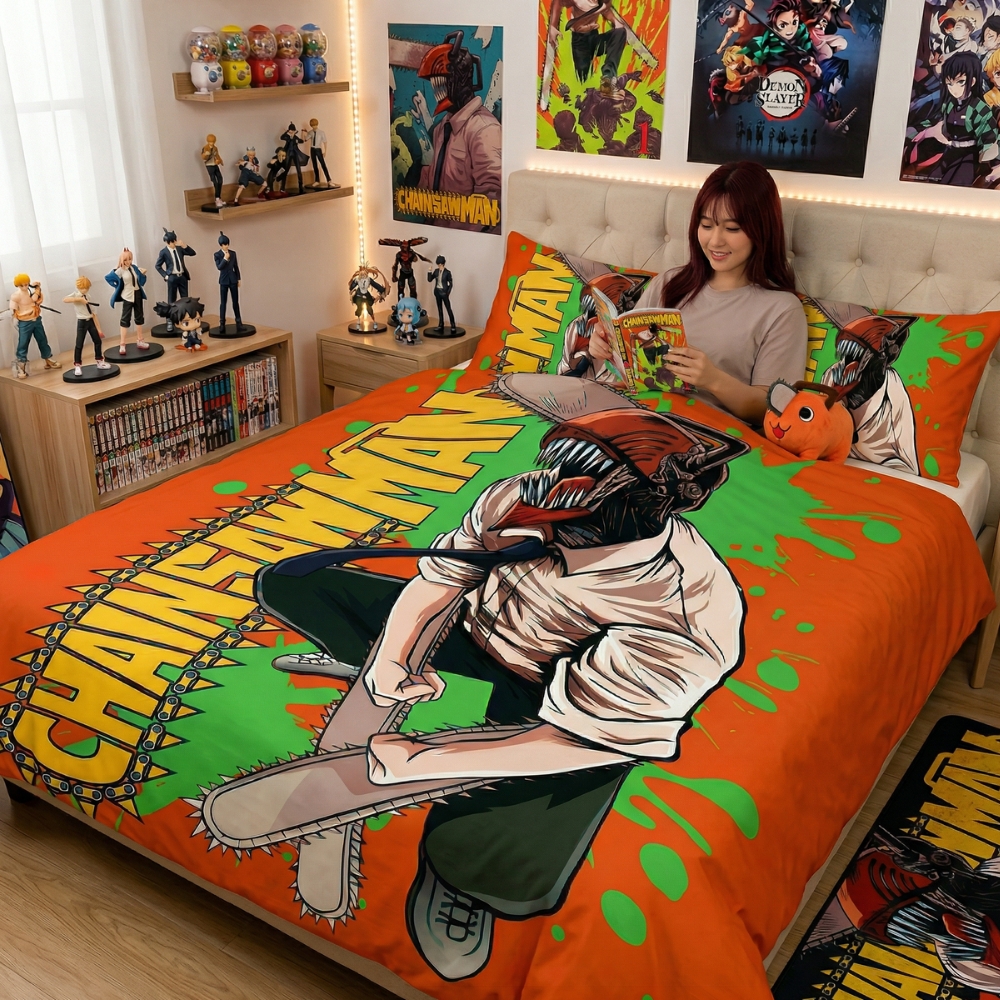 Que vous soyez amateur du manga ou de l’anime, cette parure redéfinira votre espace. Elle capture le mélange d’humour absurde et de drame noir de Chainsaw Man.
