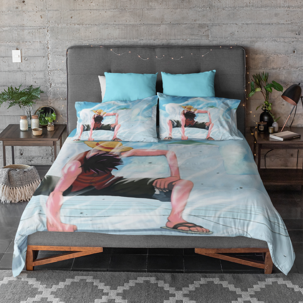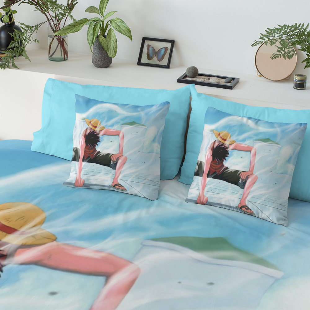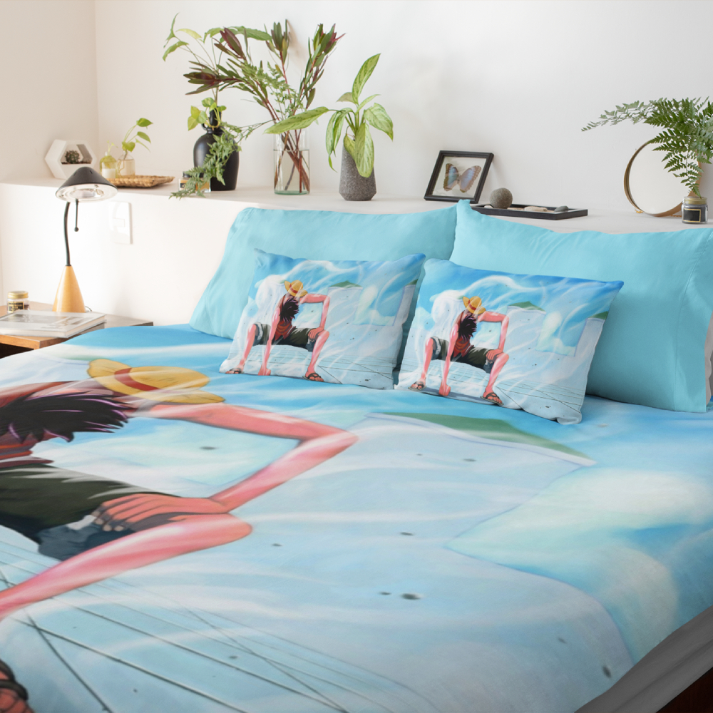 Notre parure de lit présente la vedette Luffy, le capitaine intrépide arborant fièrement son chapeau de paille légendaire. Chaque détail est reproduit avec une précision étonnante, des expressions des visages aux motifs des vêtements.