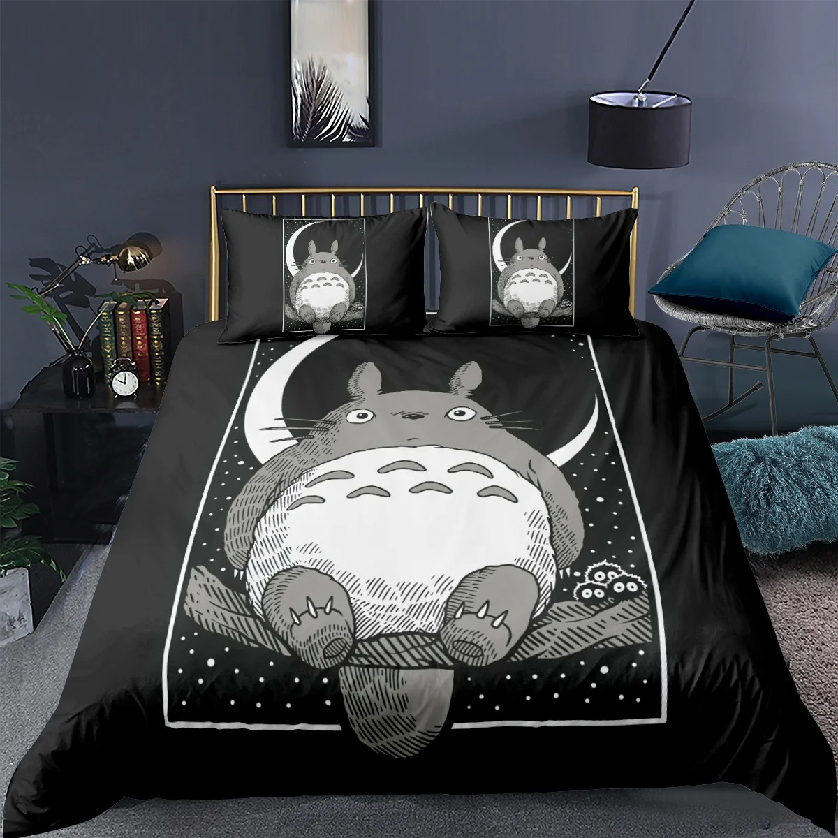 La parure de lit noire à motif Totoro et la lune est un véritable chef-d’œuvre pour les amateurs du célèbre film d’animation japonais “Mon voisin Totoro”. Cette parure de lit exceptionnelle est conçue avec une attention méticuleuse aux détails, capturant parfaitement l’esprit magique et enchanteur du film.