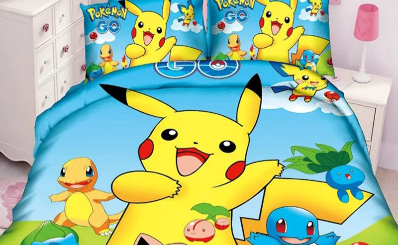 - Des taies d’oreiller assorties représentant Pikachu dans différentes poses ;