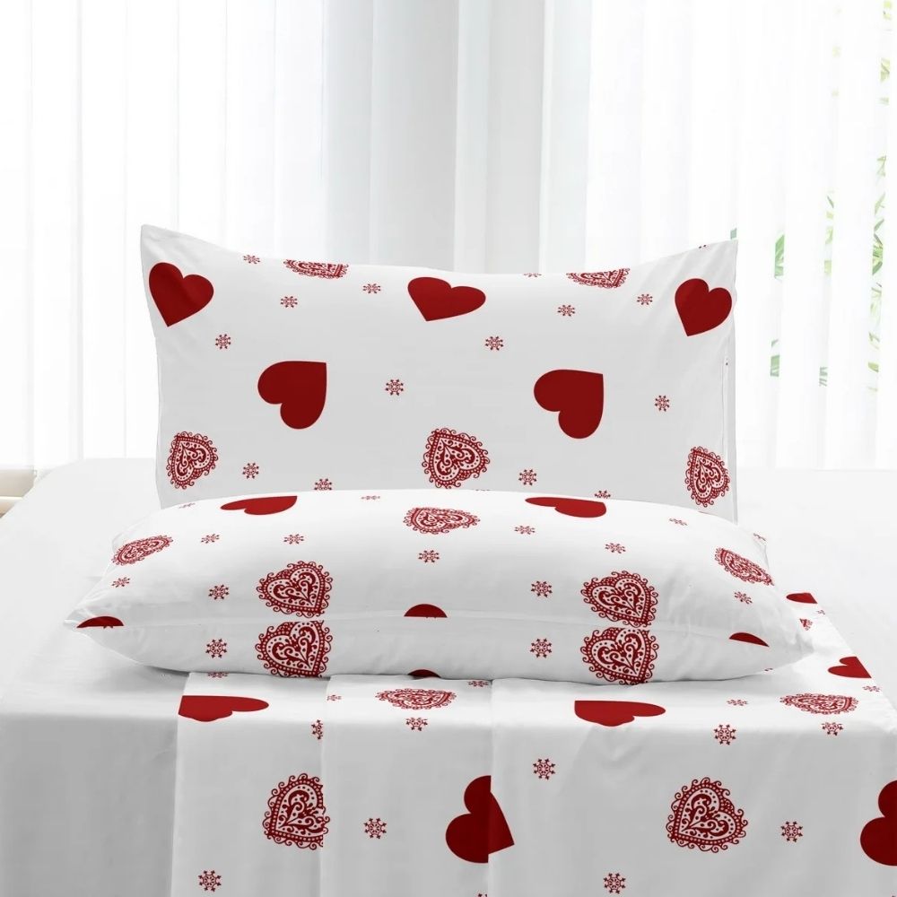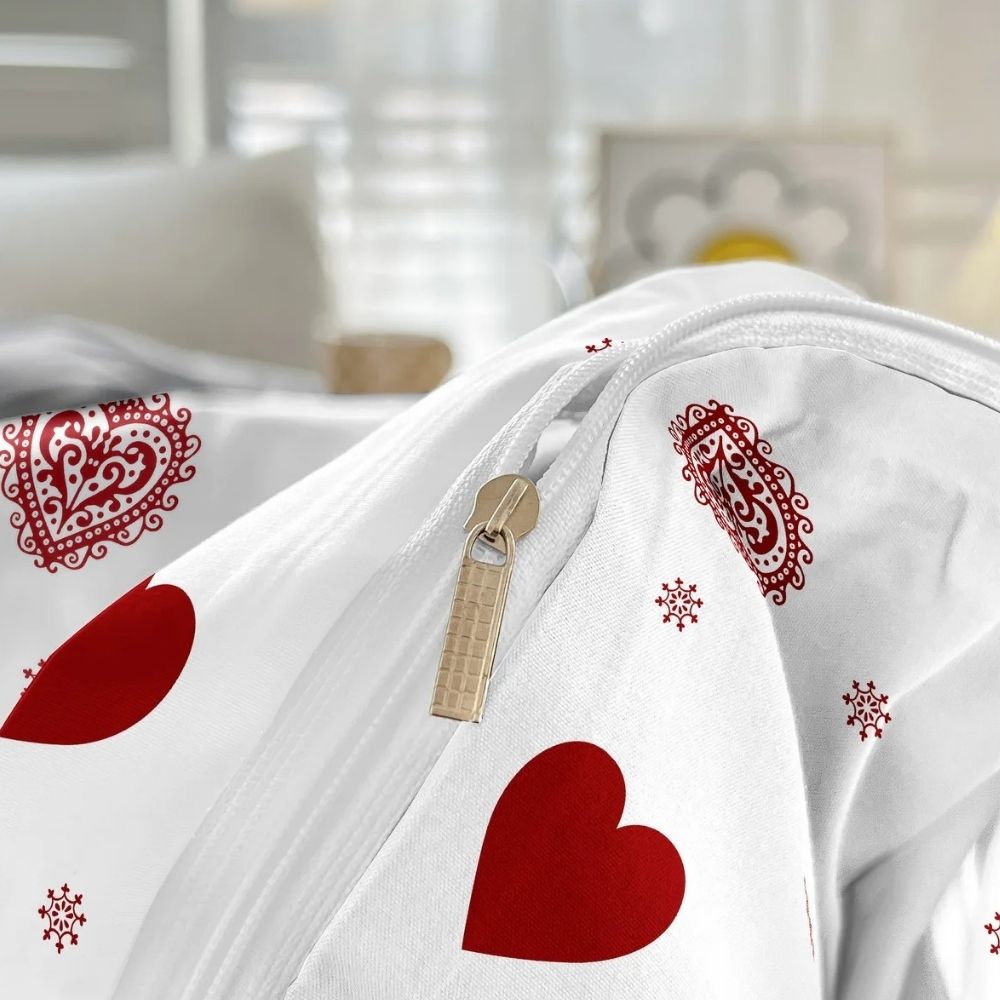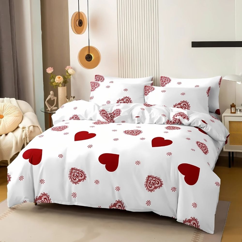 Plongez dans un univers de douceur et de raffinement avec cette parure de lit aux motifs de cœurs rouges sur fond blanc. Chaque détail respire la tendresse, parfait pour apporter une touche romantique à votre chambre.