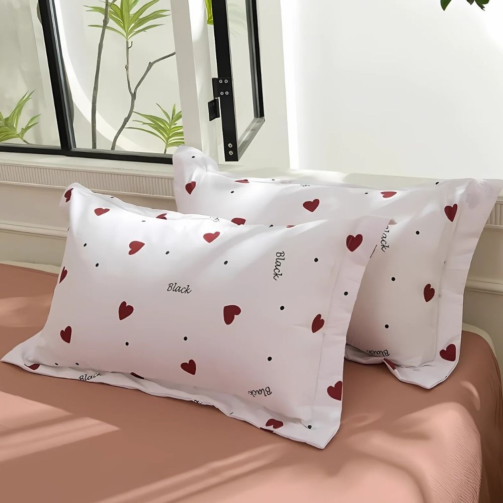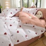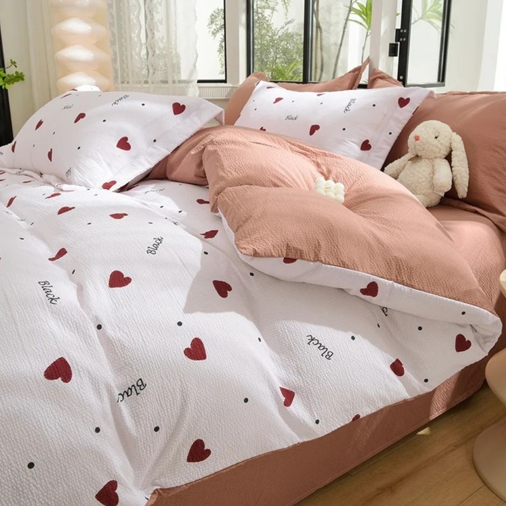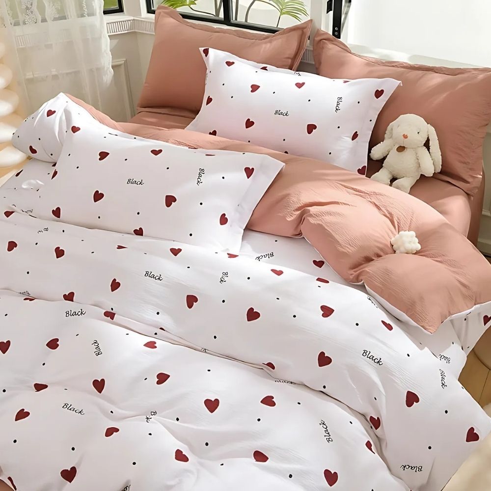 Cette parure de lit romantique associe le beige chaleureux et le blanc éclatant, sublimé par des motifs de cœurs rouges. Ce jeu de couleurs apporte une douceur visuelle idéale pour créer une atmosphère paisible et relaxante dans votre chambre.