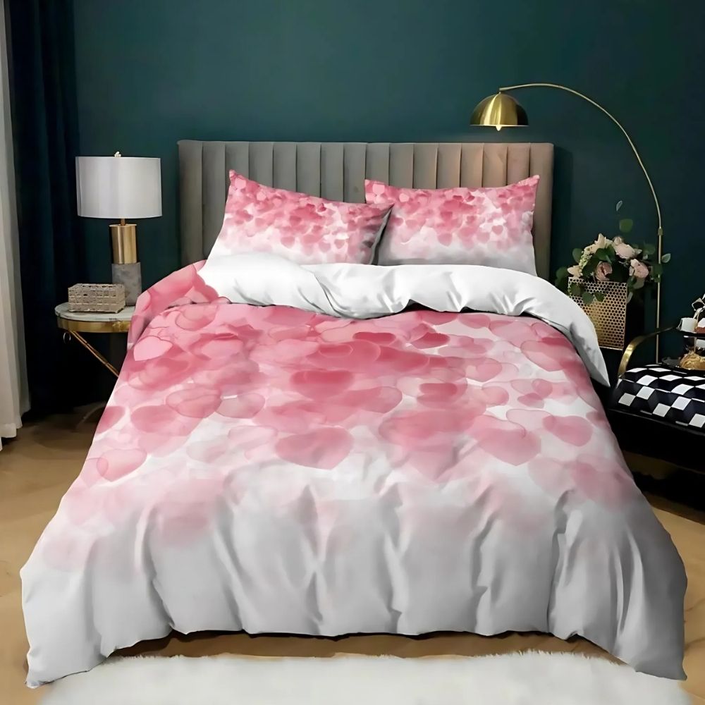 Les cœurs délicatement dispersés apportent une touche de fantaisie qui saura séduire les amoureux du beau linge. Aussi bien pour un cadeau ou pour transformer votre chambre en havre d’amour, cette parure est le choix idéal pour allier confort et romantisme.