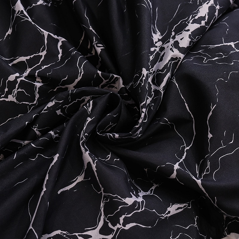 La parure de lit est Inspiré du marbre, matière rare et précieuse. Cet imprimé est noble et intemporel. Celui-ci a traversé toutes les époques. De la Renaissance jusqu’à la période « Art Déco », en passant par l’Empire et la restauration, sans oublier l’ère de tous les Rois, il a su s’imposer par sa prestance et sa beauté.