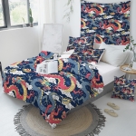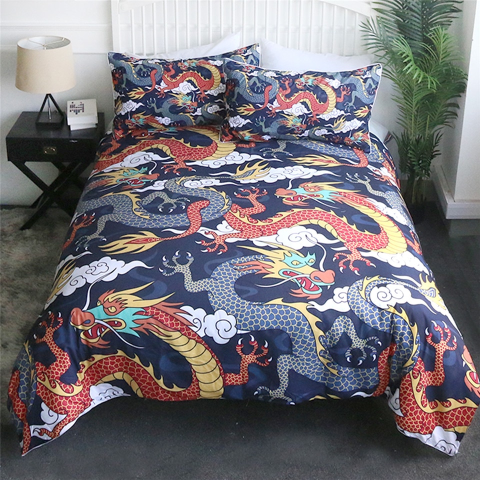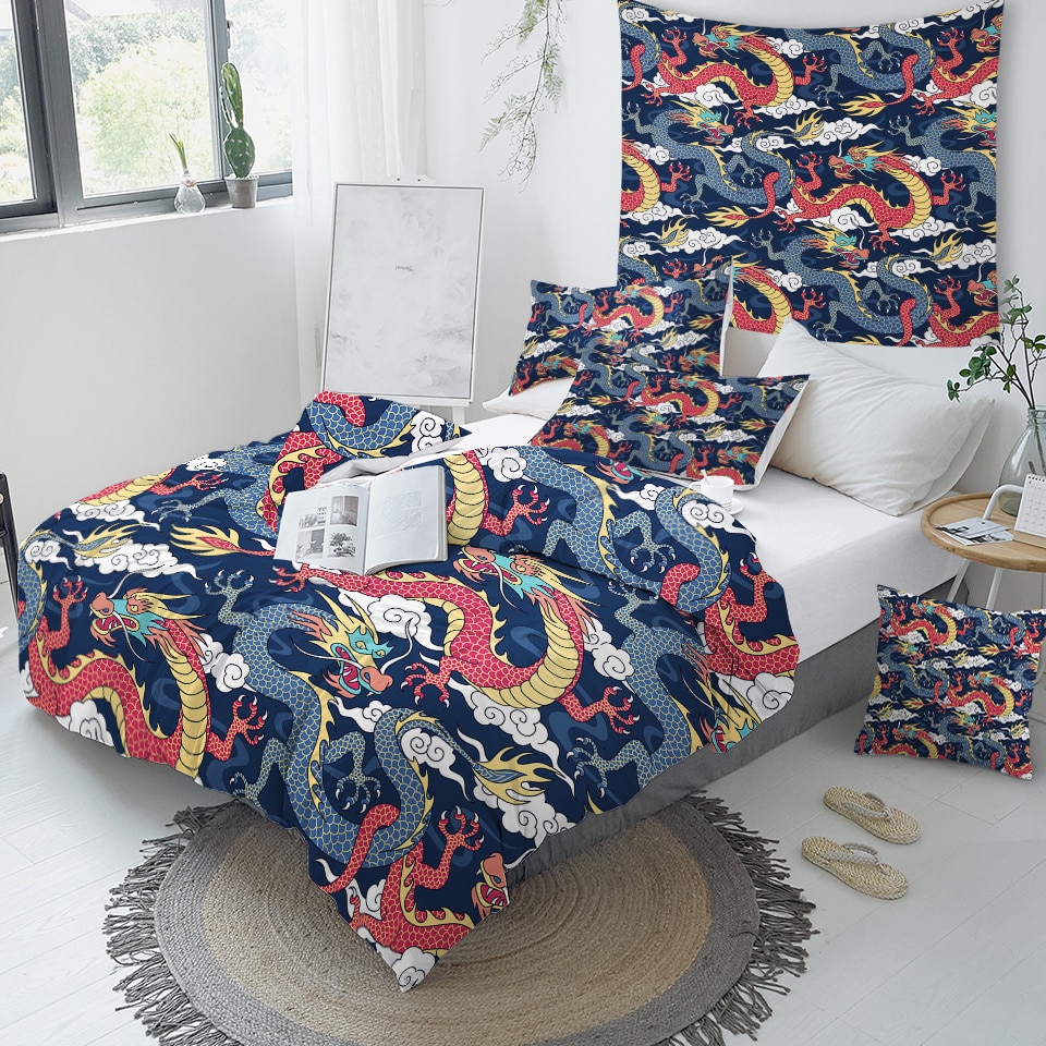 En Asie, le dragon est symbole de puissance, il est aussi le symbole du yang qui représente le principe de vie et de croissance. Une parure de lit coloré pour apporter la touche final à la déco de votre chambre.