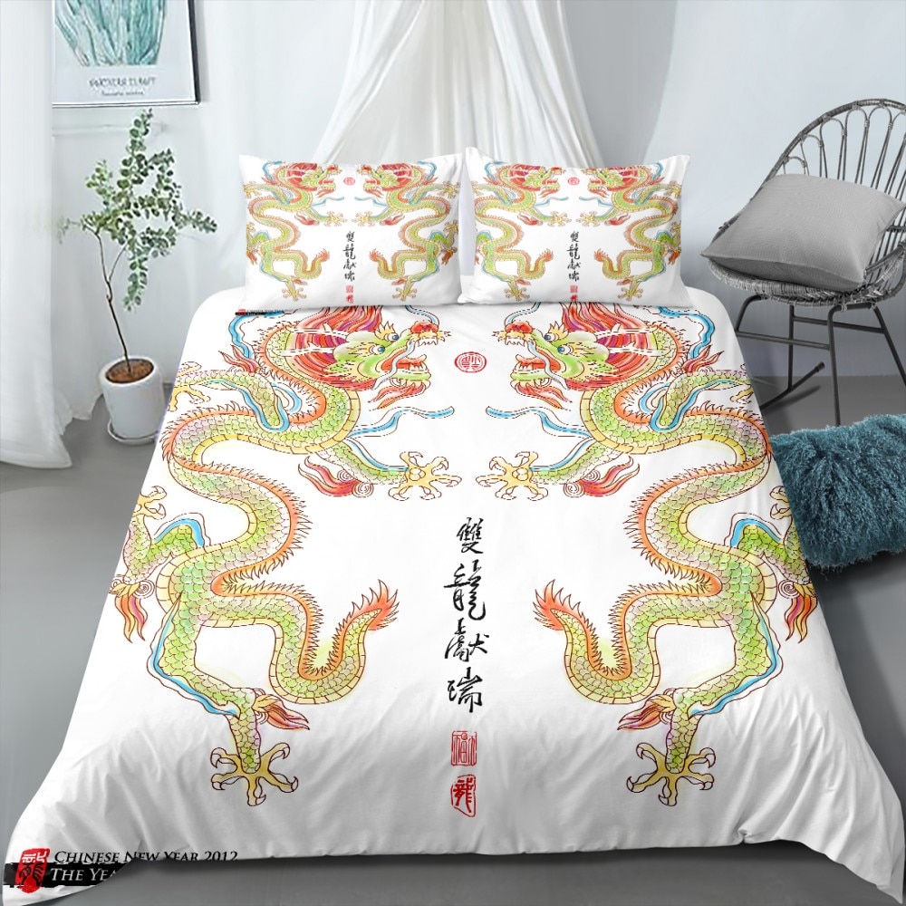 Cette parure de lit dragon vous séduira par son élégance. Les couleurs douces et les motifs finement travaillés du tissu apporteront du raffinement à votre intérieur.