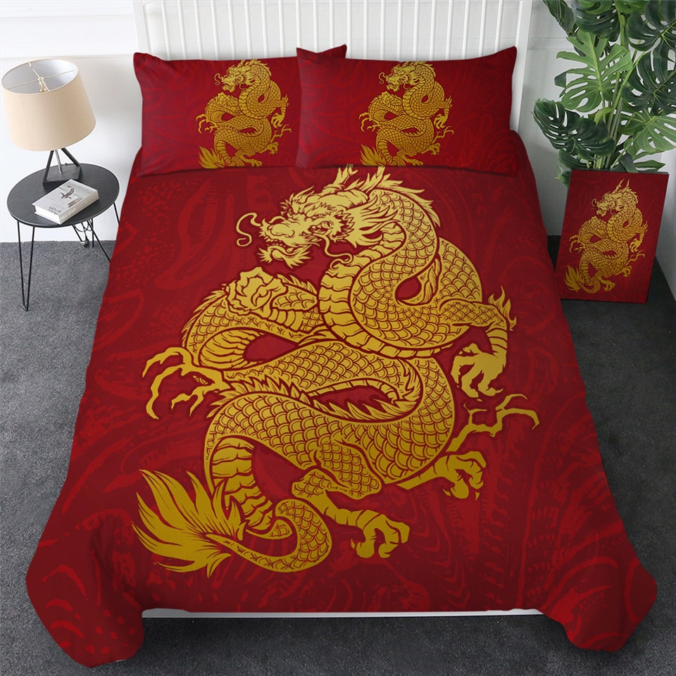 La parure de lit rouge imprimé dragon est un choix audacieux et captivant pour ceux qui recherchent une ambiance exotique et mystérieuse dans leur chambre à coucher. Cette parure de lit est conçue avec un souci du détail exceptionnel, mettant en valeur un motif de dragon majestueux qui capture l’imagination.