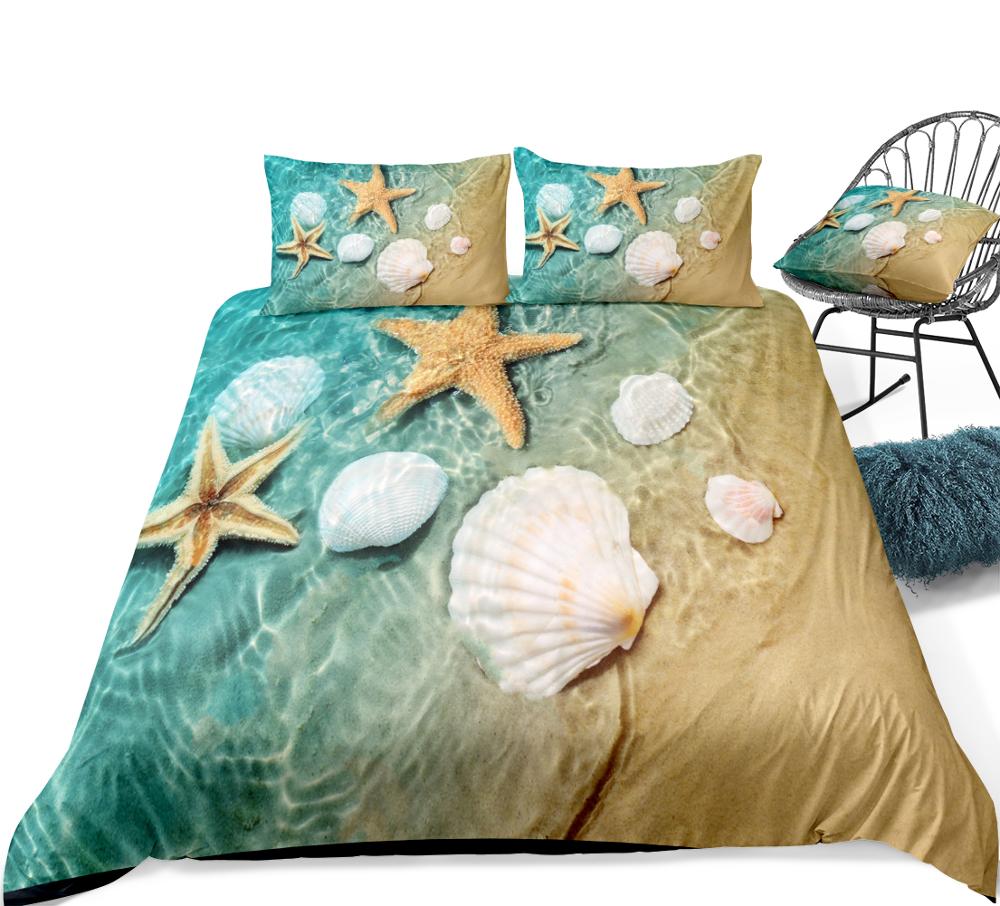 Cette magnifique parure de lit vous plongera au fond de l’océan à la rencontre des étoiles de mer et des coquillages. Un environnement idyllique qui vous promet confort, douceur et paix.