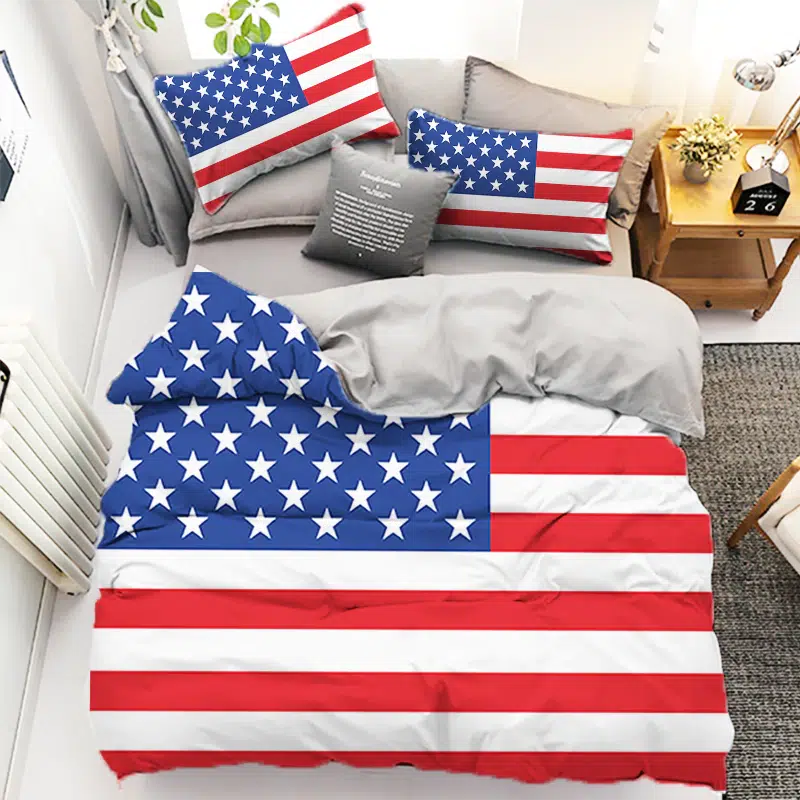 Parure de lit drapeau américain. Bonne qualité, confortable et à la mode sur un lit dans une maison