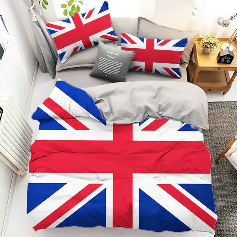 Nous proposons pour les fans de l’Angleterre cette parure de lit avec le drapeau anglais, le fameux Union Jack; c’est le pays des Beatles, de la royauté et du pudding. Nous vous laissons rêver à ce pays chargé d’Histoire et vous souhaitons un sommeil profond tous les soirs. Cette parure comprend soit: 2 taies d’oreiller (50x75cm), 1 housse de couette (210*210) 2 taies d’oreiller (50x75cm), 1 housse de couette (240*220)