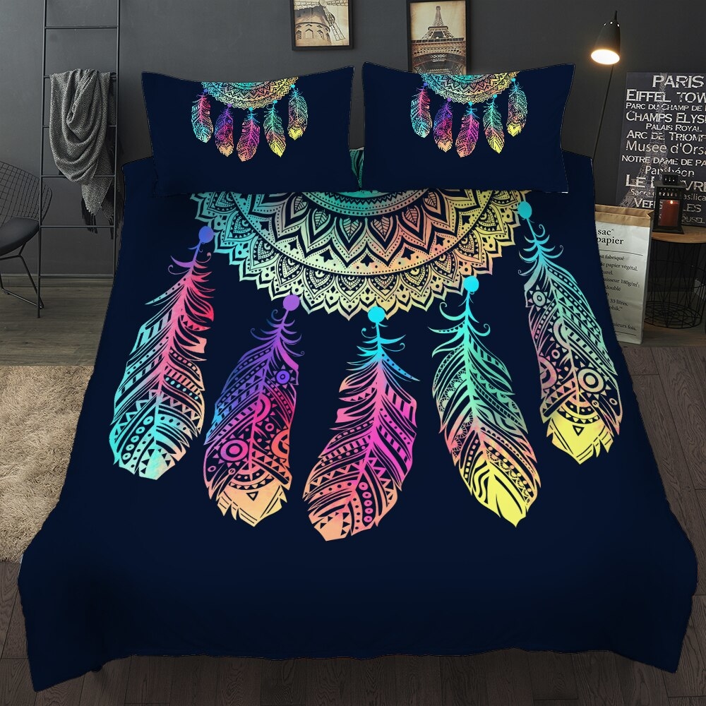Un bel attrape-rêve coloré pour vous faire passer des belles nuits pleines de rêves. A dieu les cauchemars avec cette parure de lit.