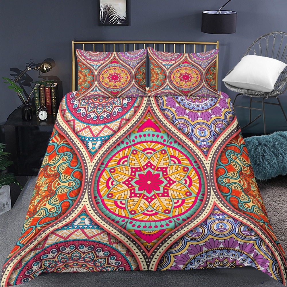 Des imprimés associant différentes couleurs et formes pour un style à la fois chic et décontracté. Cette parure de lit mandala plaira à coup sûr aux amoureux de la décoration bohème.