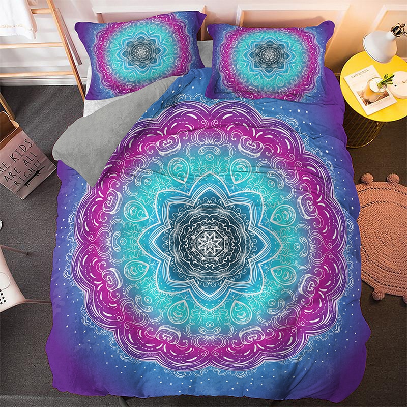 Dans la tradition bouddhiste et hindoue les mandalas sont utilisés pour la méditation. Faites de votre chambre un espace zen avec cette jolie parure de lit.