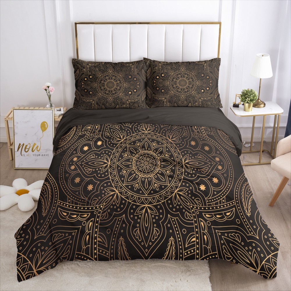 Les mandalas sont des cercles sacrés issue de la culture bouddhiste et hindou. Le noir et l’or sont des couleurs qui symbolisent la spiritualité, la sagesse et l’harmonie.