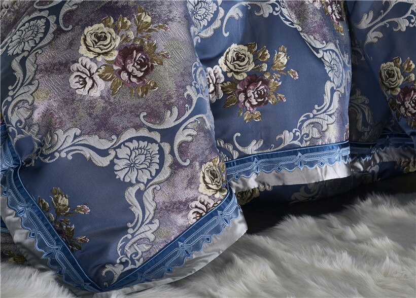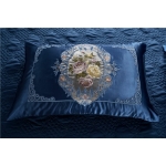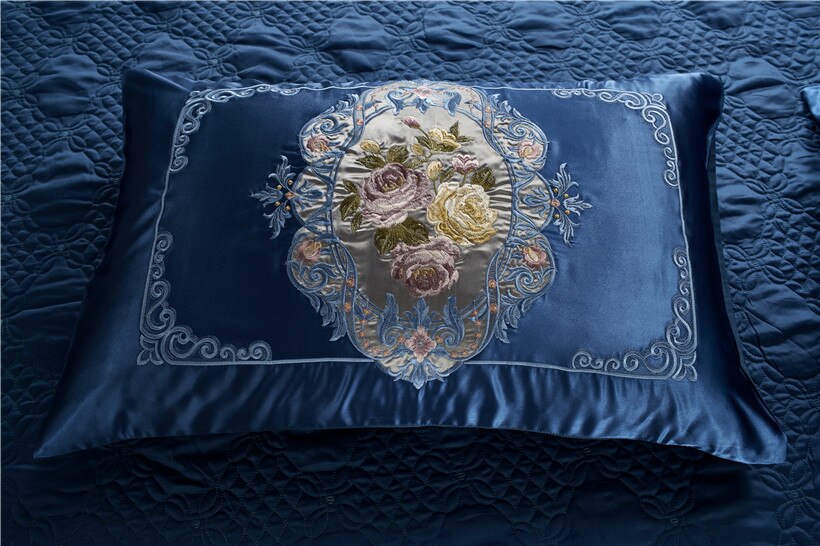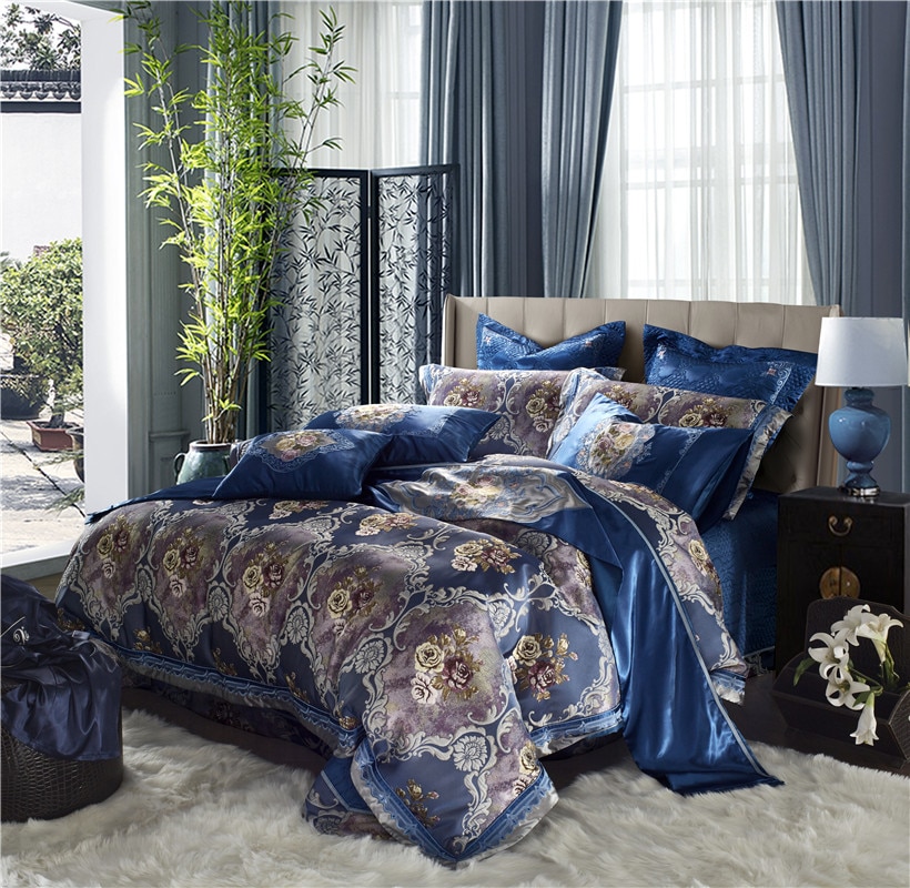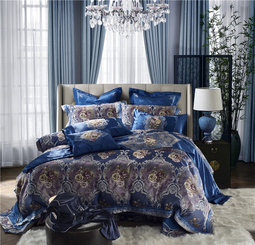 Somptueuse parure de lit bleu en satin