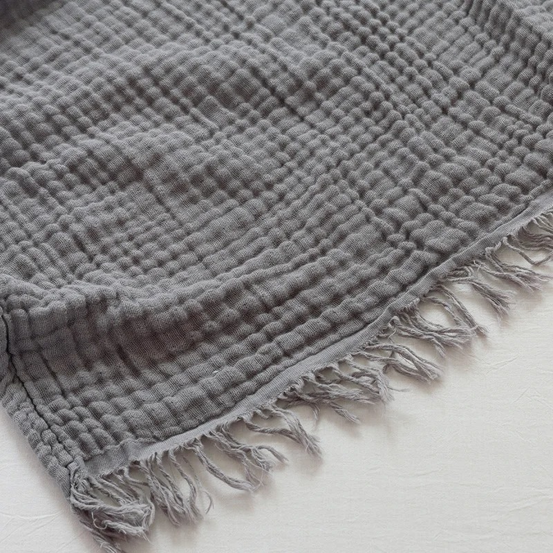 Le couvre-lit gris foncé en gaze de coton est un produit luxueux et élégant qui apportera une touche de sophistication à votre chambre à coucher.