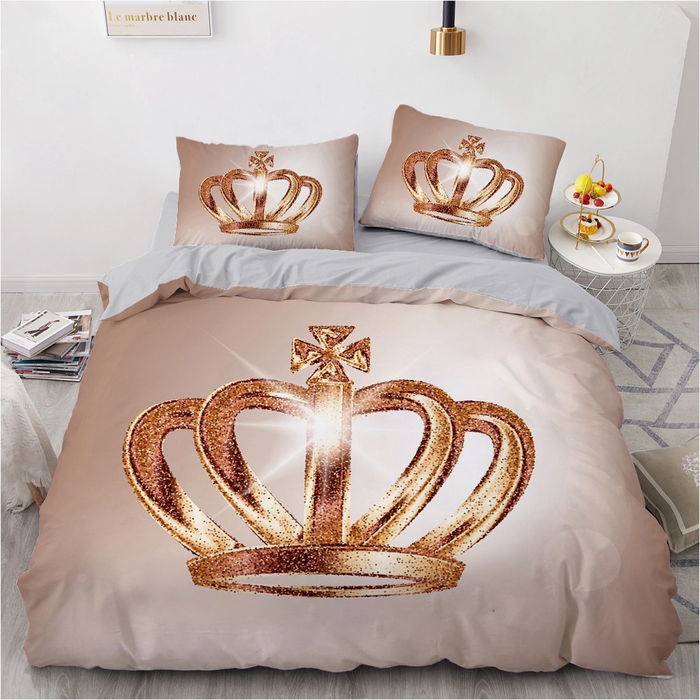 Une parure de lit à l’esprit girly pour adoucir la pièce. La couronne apportera une touche royale à votre chambre. Ces couleurs s’accorderont parfaitement avec la décoration de la pièce.