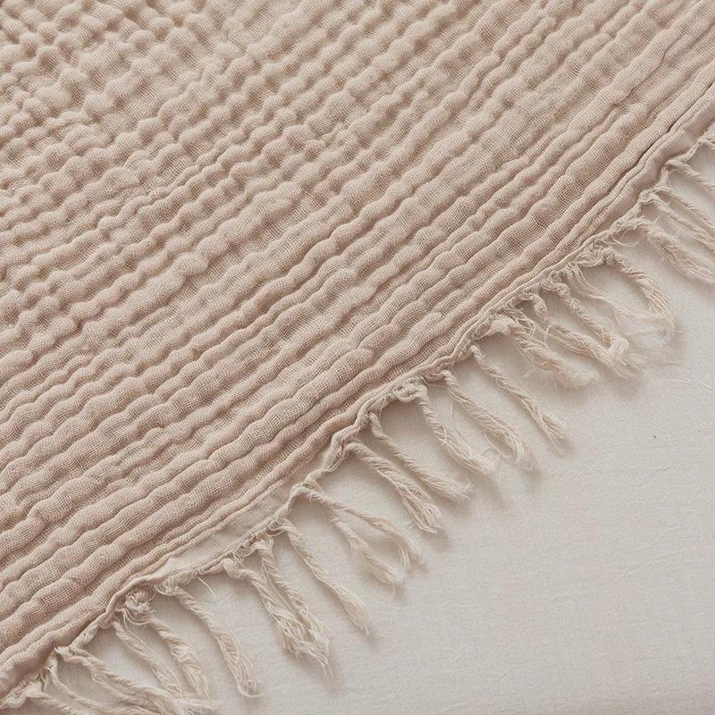 La gaze de coton utilisée pour fabriquer ce couvre-lit est connue pour sa texture légère et aérée. Elle est également très confortable, ce qui en fait un choix idéal. Sa légèreté vous entoure telle une étreinte douce, créant une atmosphère chaleureuse et apaisante dans votre chambre.