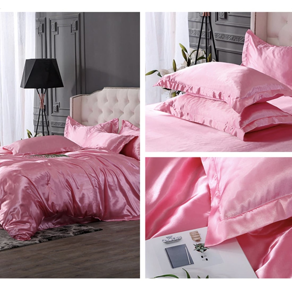 Une chambre girly avec des draps de soie rose barbie. Une couleur qui dynamisera la pièce. Cette parure de lit vous transportera dans des rêves romantiques.