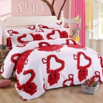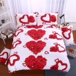 Agrémentez votre chambre de cette belle parure de lit avec rose rouge. Laissez-vous envahir l’atmosphère chaleureuse et romantique qu’elle diffusera à travers sa couleur intense et ses imprimés de fleurs et de cœurs.