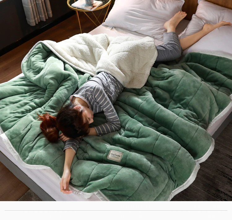 La parure de lit épaisse polaire et en flanelle verte est une couverture de literie élégante et confortable.