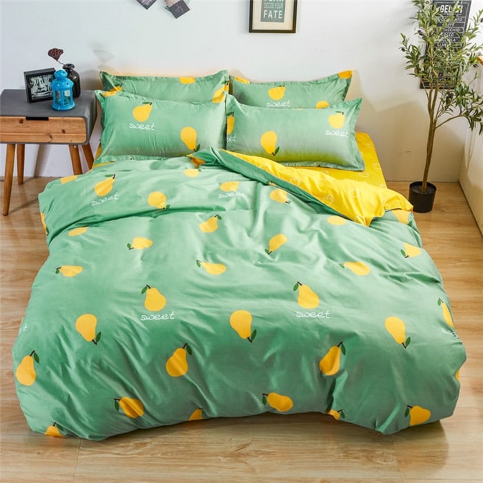 La parure de lit imprimé poires est un ensemble de literie magnifique et élégant qui apportera une touche de fraîcheur et de gaieté à votre chambre à coucher.