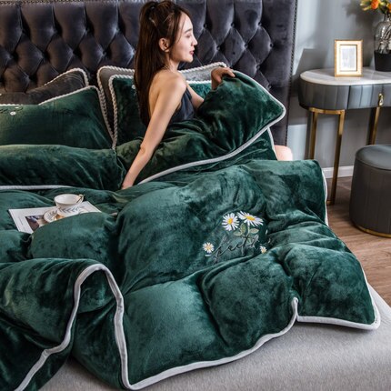 Vous ne craindrez plus le froid dans votre chambre avec cette parure de lit vert foncé en flanelle. Son tissu doux et moelleux avec d’excellentes propriétés thermiques vous tiendra bien au chaud.