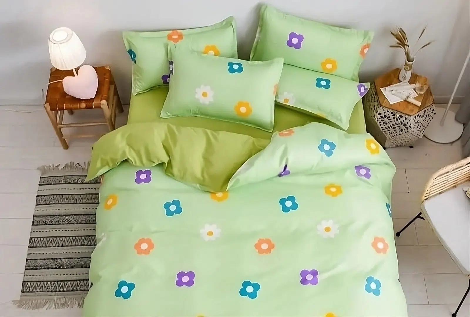 Cet imprimé sur fond vert, apportera de la fraicheur à votre intérieur. Avec cette parure, faites rentrer le printemps directement dans votre chambre !