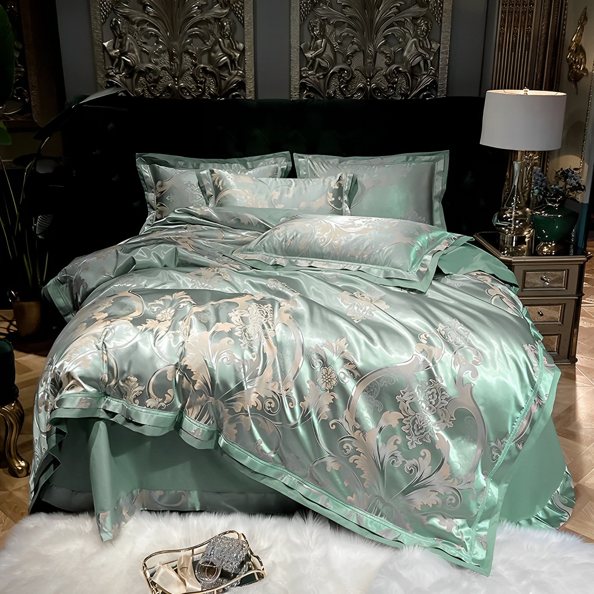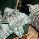 On a tout de suite envie de se glisser dans cette parure de lit à l’allure royale et si douce. Le mélange de coton et de soie sera un bonheur sur votre peau pour des nuits reposantes.