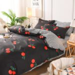 Une parure de lit amusante, pleine de légèreté. La parure est réversible avec un envers à petits carreaux noir et blanc pour changer de style.