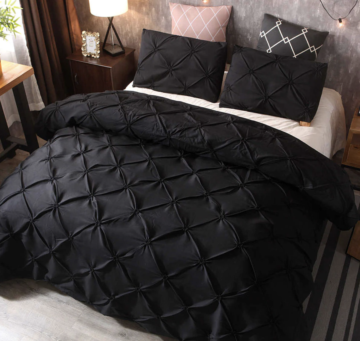 Ce noir profond va vous faire rêver. Les carreaux de cette parure adoucie votre chambre et donne un effet hors du commun à votre lit.