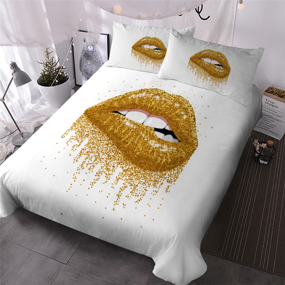 Des motifs chics et modernes ajoutant une pointe de luxe à l’ensemble de la décoration. Choisissez cette parure à motifs lèvres pour une chambre à l’allure moderne et élégante.
