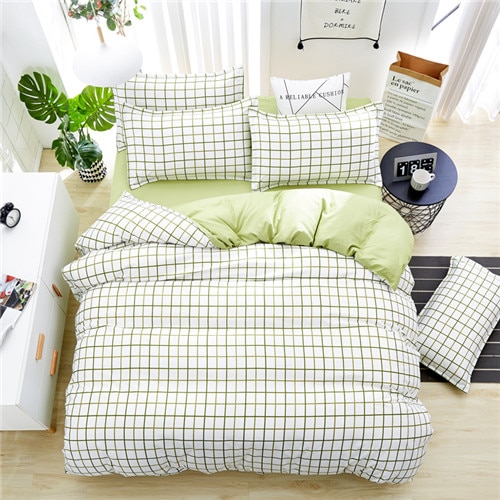 Cette parure de lit blanche avec carreaux verts vous accompagnera durant l’été. Elle insufflera dans votre chambre un vent de fraîcheur.