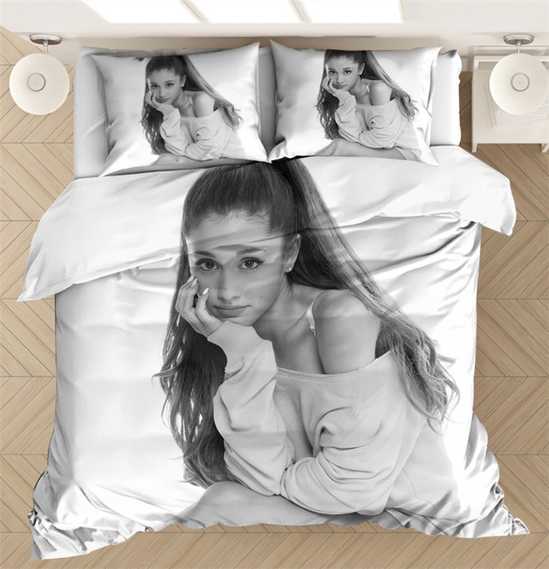 Cette parure de lit chanteur avec énorme imprimé représentant Ariana Grande vous promet de belles nuits de sommeil grâce à son tissu assurant douceur et confort.