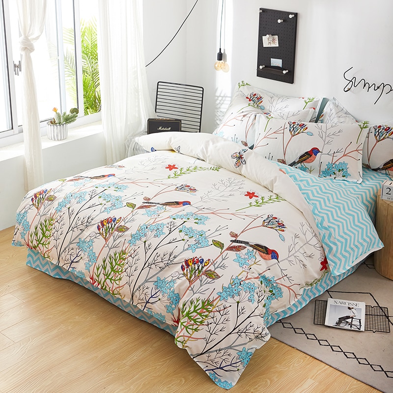 Cette parure blanche avec motif oiseaux et fleurs fera entrer les couleurs de la nature dans votre chambre. Elle vous fera voyager !