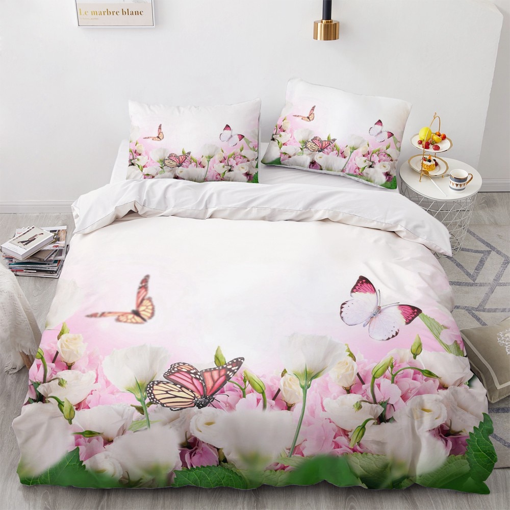 Cette parure de lit blanche à motif fleurs et papillons est idéale pour faire entrer les couleurs de la nature dans votre chambre. Choisissez-la pour adopter une déco nature apaisante.