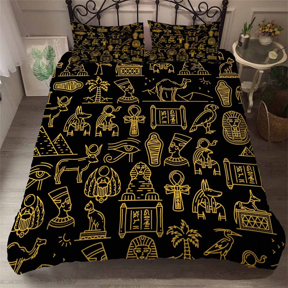 Cette parure de lit égyptienne noire est parsemée de symboles égyptiens dorés très jolis. Ils vous aideront à vous détendre grâce à leur aspect spirituel.