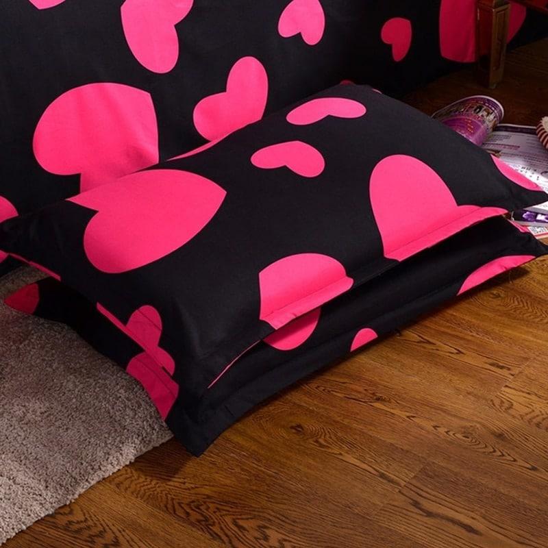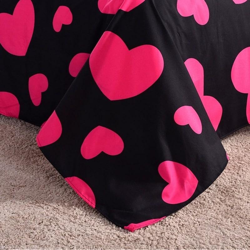 Mettez de la couleur et du punch dans votre chambre, en essayant cette parure de lit noire avec grands cœurs roses. Cela va créer une belle ambiance agréable dans votre chambre à coucher. Il ne vous reste qu’à trouver les autres lampes et meubles accessoires pour compléter le décor.