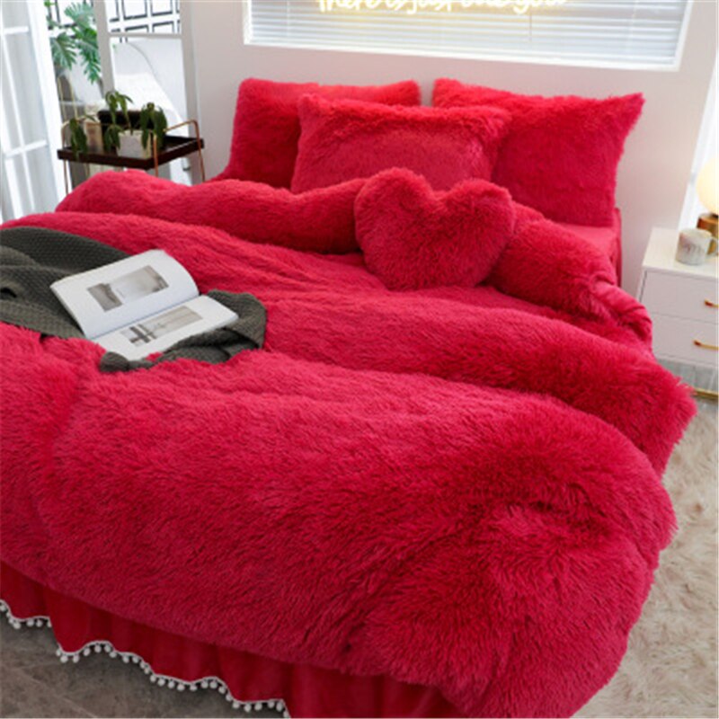 Idéale pour une ambiance cocooning, la fausse fourrure que revêt cette parure de lit rouge cerise réchauffera l’atmosphère dans votre chambre à coucher.