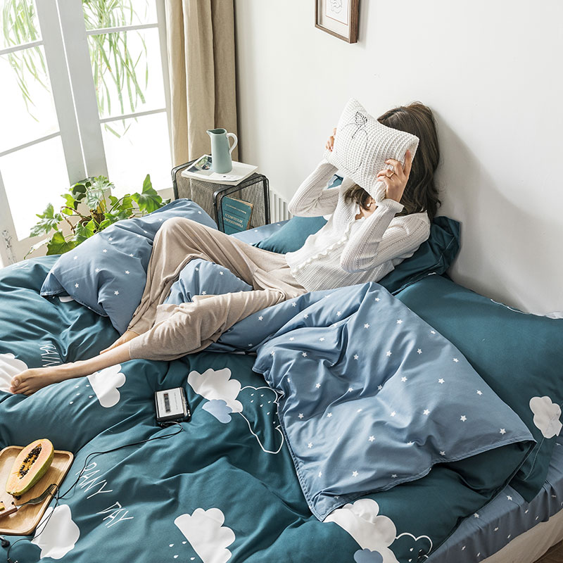 Des motifs ludiques pour favoriser une atmosphère douce et apaisante. Vous vous envolerez au pays des rêves avec cette parure de lit motif nuages.