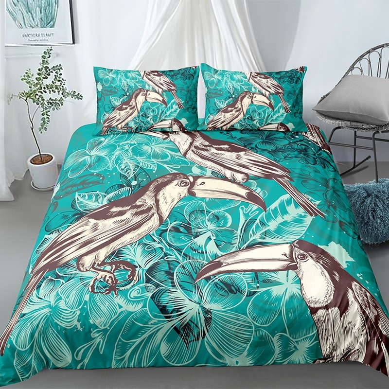 Votre chambre deviendra un lieu propice à la détente et au dépaysement avec cette jolie et douce parure de lit verte.