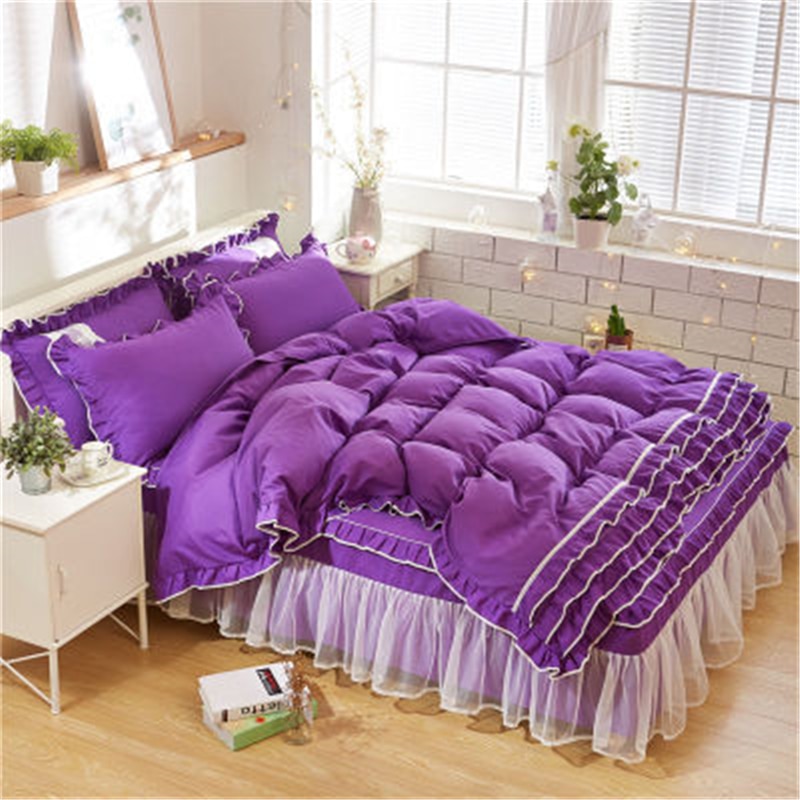 Choisissez cette parure de lit violette à dentelle pour adopter dans votre chambre une déco rétro chic. Glissez-vous dans cet ensemble de literie en coton pour un hiver bien chaud.
