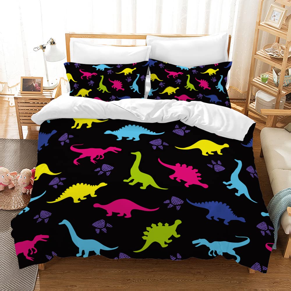Vous recherchez un ensemble de literie vraiment unique qui fera ressortir la chambre de votre enfant ? Ne cherchez pas plus loin que notre ensemble de lit dinosaure multicolore ! Cet ensemble accrocheur présente un ensemble coloré de dinosaures sur un fond noir, qui égaiera à coup sûr n’importe quelle chambre. La housse de couette et les taies d’oreiller sont fabriquées en matériau doux, 100 % polyester, ce qui les rend douillettes et confortables. De plus, ils sont lavables en machine pour un entretien facile. Votre enfant adorera se blottir contre ses amis préhistoriques préférés à l’heure du coucher avec cet ensemble de lit amusant et élégant.